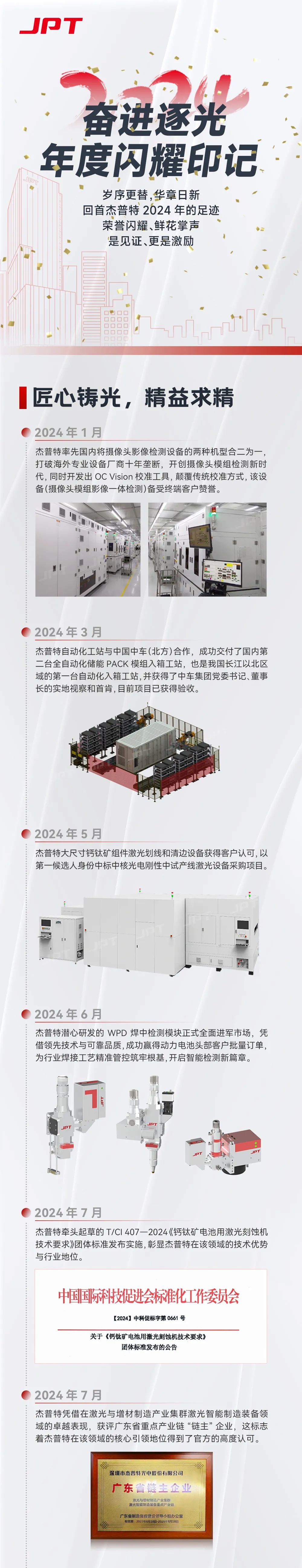回首东升国际 2024 年的足迹,这一年荣誉闪耀、掌声鲜花,是见证,更是激励。这一年,东升国际以匠心铸光,精益求精,引领激光科技新高度。从新品发布到荣誉加持,我们的每一步都镌刻着创新与品质的追求;这一年,深耕核心激光技术,聚焦激光核心模块,技术实力再攀高峰。激光修阻机斩获“第八批国家级制造业单项冠军”等多项荣誉,彰显行业认可;这一年,携手全球客户与合作伙伴,共创更多非凡瞬间。